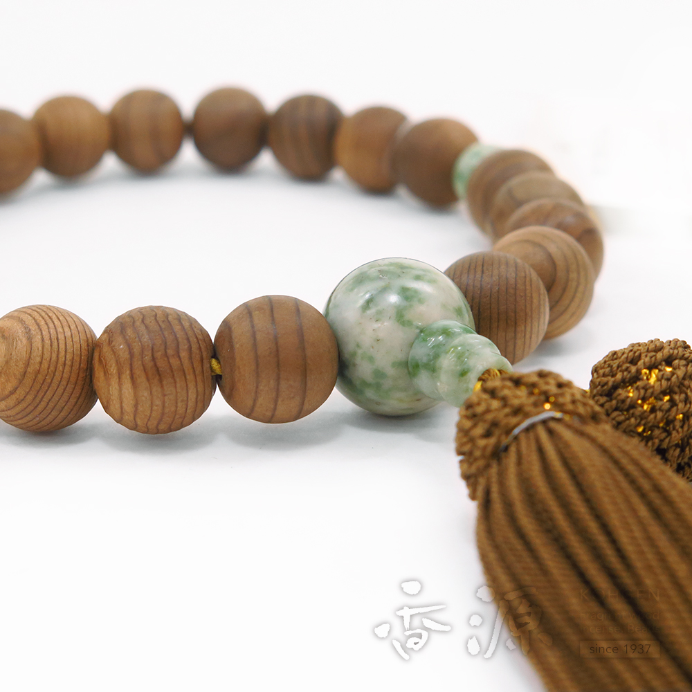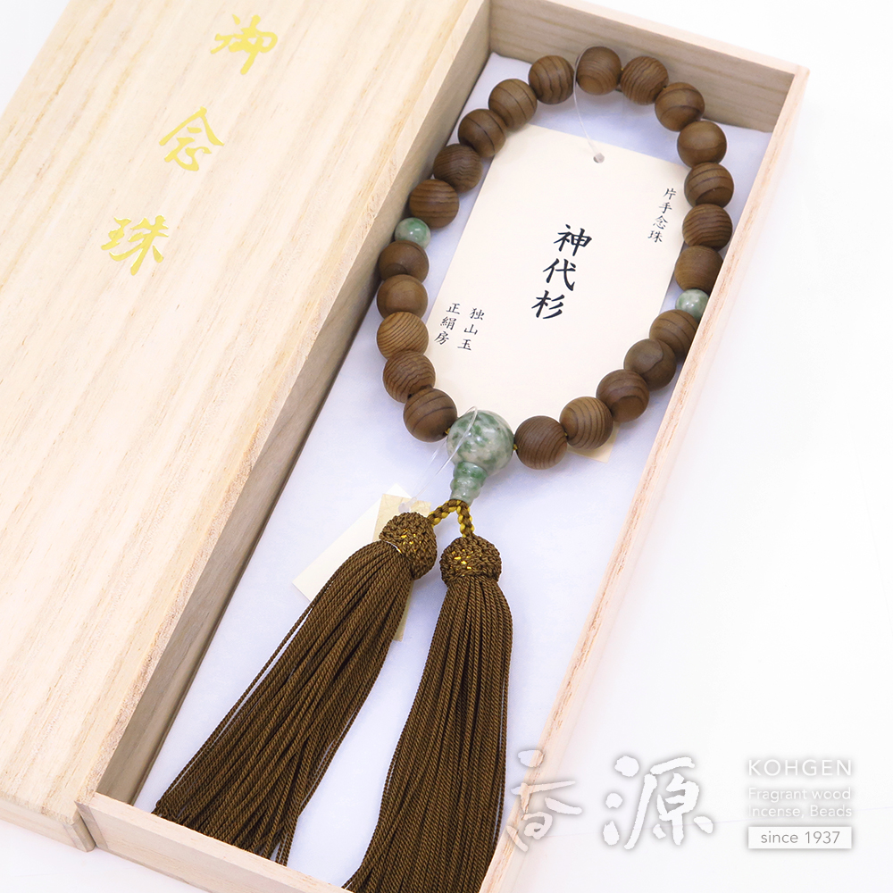 男性用数珠 神代杉 22玉 独山玉仕立て